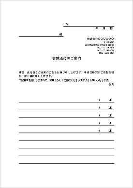 A4縦 書類送付の案内状のテンプレート無料ダウンロード 書式1 Wordテンプレート |